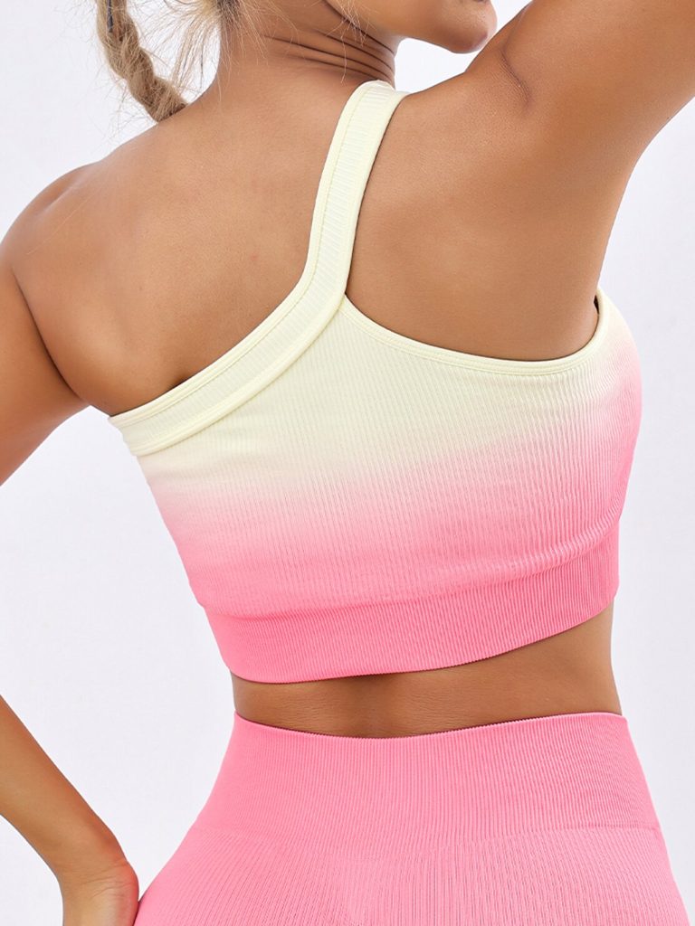 Lady’s Seamless Ribbed Gradient One-shoulder Yoga Bra